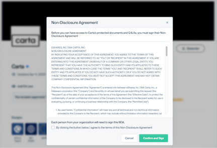 5. You will be prompted to sign an NDA in order to gain access to Carta’s protected documents.