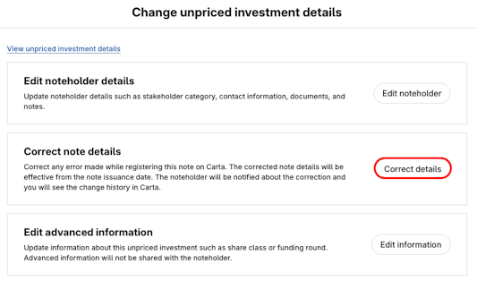 3. Click Change convertible loan notes details.
