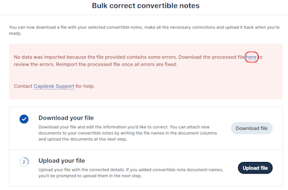 You can bulk correct errors made while registering convertible loan notes in Carta.