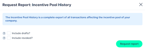 The Incentive Pool History is a complete export of all transactions affecting the incentive pool of your company. You are able to include drafted securities and revoked securities in the export.