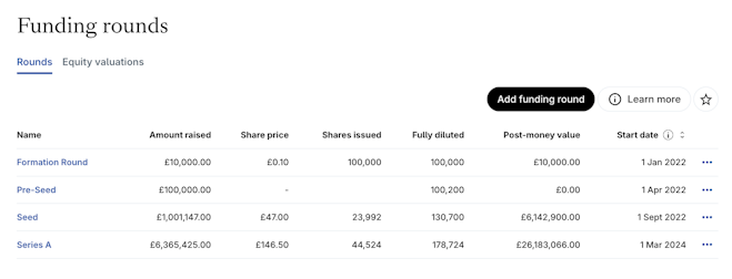 Carta makes it easy for you to manage and review your funding rounds.