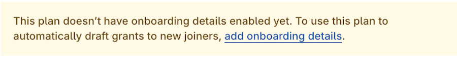 Plan: If the plan selected does not have onboarding details enabled yet, you will be prompted to add onboarding details. Click Add onboarding details to navigate to the plan details and add details under default onboarding. Once the information is added, click Save to be redirected back to the rule set-up.