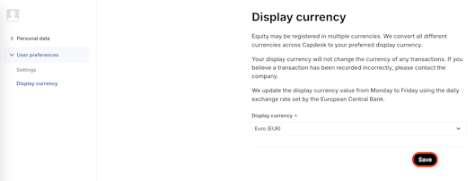 You can modify the default currency in your account. Carta will update your account every weekday, using the respective daily exchange rate.
