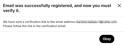 4. A prompt will be displayed indicating the new email must be verified (The verification link will be valid for 7 days). Click Okay.