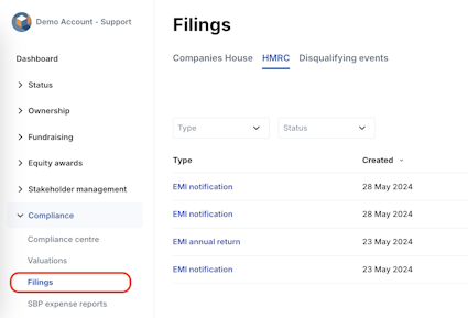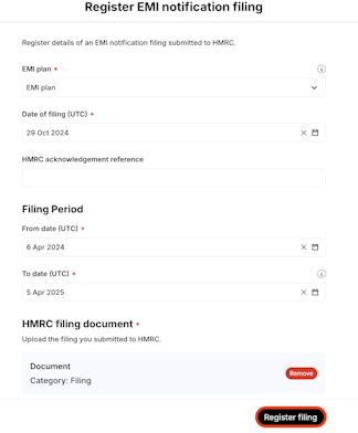 1. Navigate to Compliance > Filings > HMRC.
