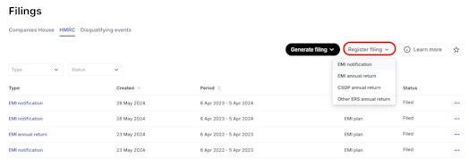 Companies House filings | HMRC filings |