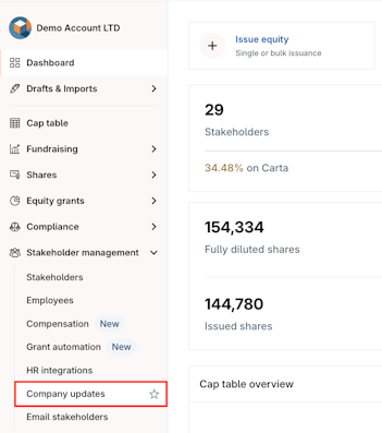1. Navigate to Stakeholder management > Company updates.
