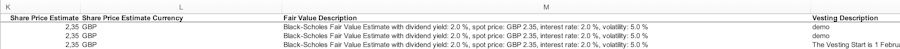 Share Price Estimate - The estimated share price, this is only detailed in a period where the grantholder has exercised their options.