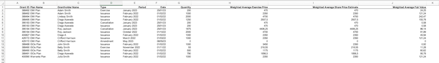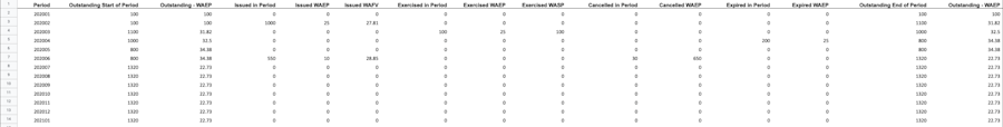 Issued in Period - How many options were granted to an optionholder in a certain period.