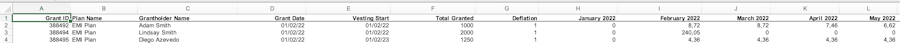 This worksheet highlights details of the grants and corresponding valuations to be in line with IFRS.