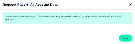 3. An email will be sent you with with a link to export the data. If you are having issues locating the email, verify your spam inbox. Note that depending on the amount of data in the company's account, the email might take some minutes.