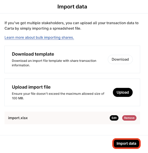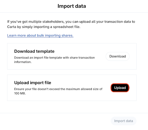 You can import share conversions in bulk using an excel spreadsheet available in Carta.