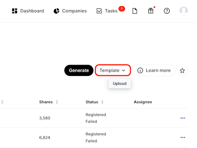 2. Click Template > Upload.