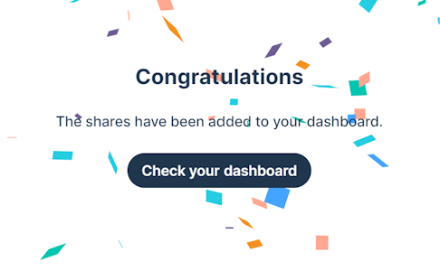 4. Click Check your Dashboard  to see your investments reflected.