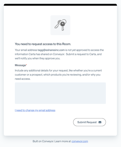 1. Navigate to Carta’s Conveyor Room and enter your work email address.