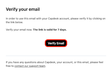 4. A prompt will be displayed indicating the new email must be verified (The verification link will be valid for 7 days). Click Okay.