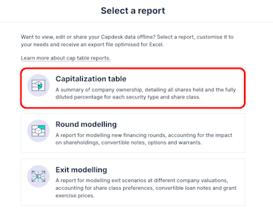 3. Select the Capitalization table report.
