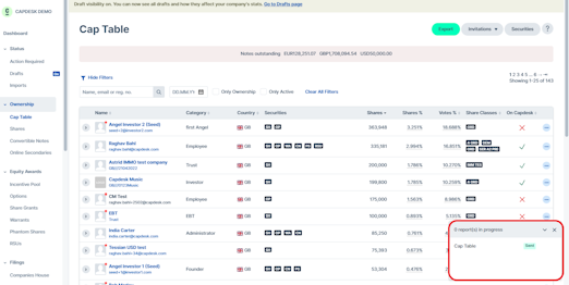 1. Navigate to Ownership > Cap table.