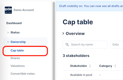 1. Navigate to Ownership > Cap table.