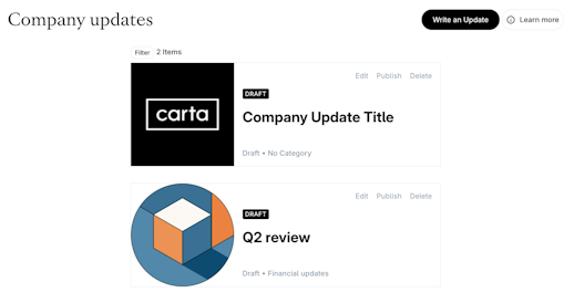 With Company Updates, you can keep your shareholders aware of your company's updates.