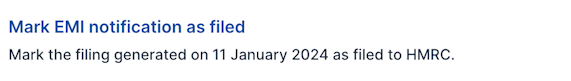 The Compliance centre will also prompt a reminder for administrators to mark the EMI Annual Return as Filed when they finish the notification to the HMRC.