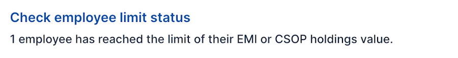 Click Check employee limit status to review the individual and aggregated limits for EMI and CSOP issuances.