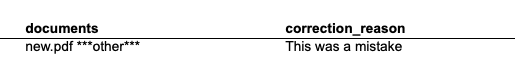 If you want to add documents to the corrected transactions, the format must follow the below example: