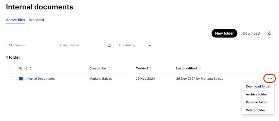 Archive folder - this will archive the folder and move it to the Archived tab;
