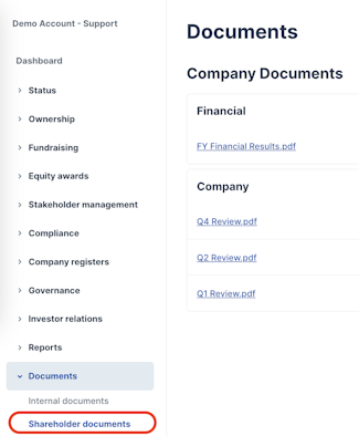 1. Navigate to Documents > Shareholder documents and click Upload a New Documents.