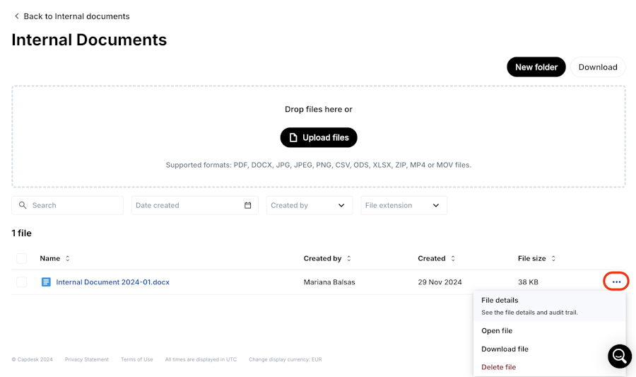 Use this feature to share any documents with other company administrators or with Carta Staff.