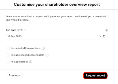 4. Customise the report accordingly and click Request report.