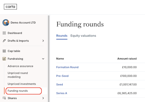 1. Navigate to Fundraising > Funding rounds > Rounds.