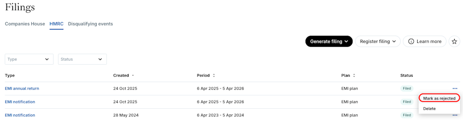 Export and download HMRC filings for your EMI , CSOP and Unapproved plans.