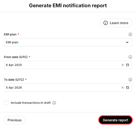 You can use our Compliance Centre in order to be reminded of when to generate and file your EMI Notification.