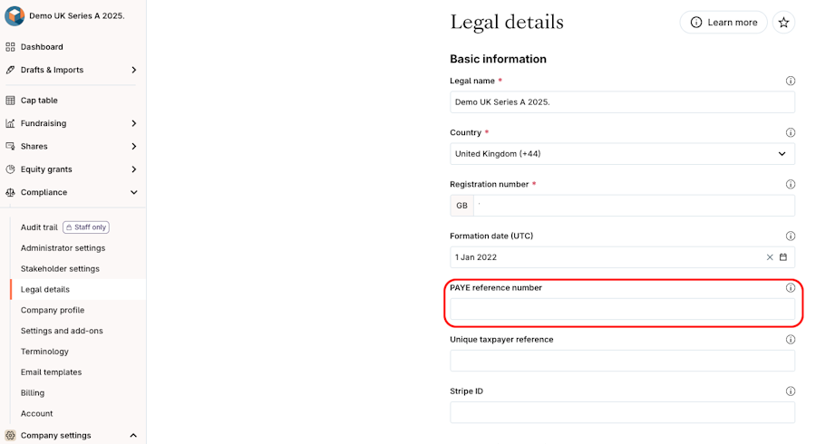 1. Before generating an Annual Return, Update the company's PAYE Reference number in Legal Details.