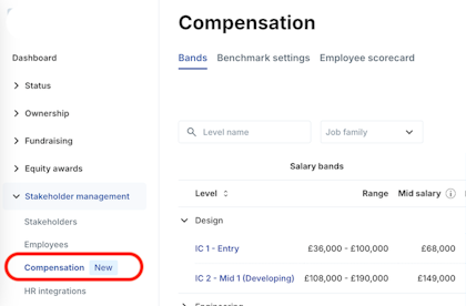 1. Navigate to Stakeholder management > Compensation > Bands.