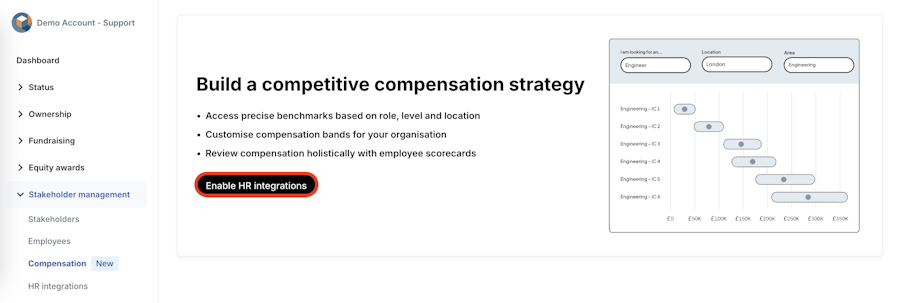 3. Once you have successfully enabled HR Integrations, click Configure compensation.