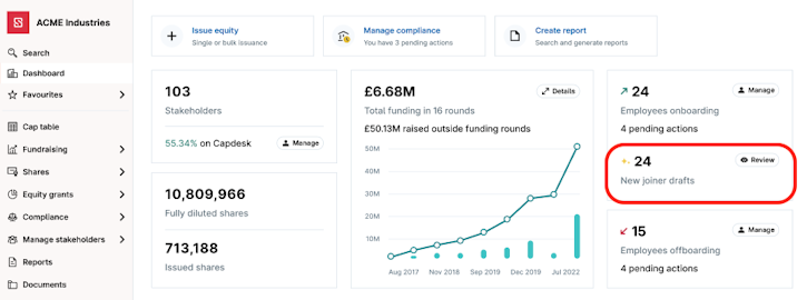 Draft grants to new joiners automatically from your HR Integration.