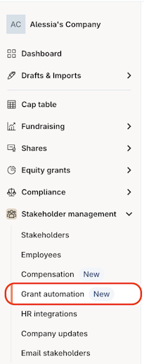 1. Navigate to Stakeholder management > Grant automation.