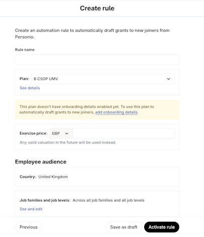 Draft grants to new joiners automatically from your HR Integration.