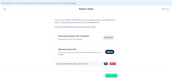 3. Secondary transactions may include a note conversion or a note repayment and you can record this directly on the import file itself.