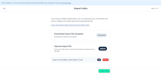 4. Once you have finished adding the data on the spreadsheet, once again upload the file and click Import data.