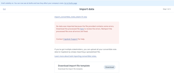 5. If any errors are found, a message will be displayed and you will be able to download a file indicating the errors.
