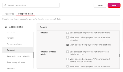 14. Navigate to People > Personal > mark the View selected employees' Personal sections checkbox.