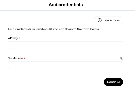 1. You will be prompted to add an API Key and a Subdomain, which can be found on your Bamboo HR account.