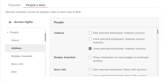 13. Navigate to People > Address > mark the View selected employee's address sections checkbox.