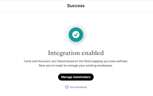 The HR integration will link the data between your HR system and Carta via email address. If there is already an existing user on Carta whose email address matches an email address on your HR system, they will be linked automatically.