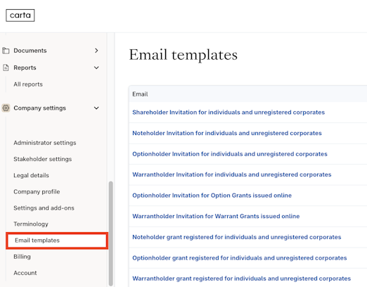 1. Navigate over to Settings > Email templates to see a list of templates that can be customized.