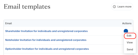Invitations are sent automatically to your stakeholders when you publish their first issuance (transaction). Clicking Publish and notify shareholder will trigger the invitation.