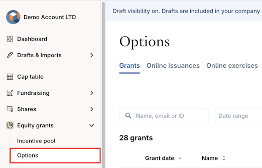 For the purpose of this article, we will use the issuance of option grants individually as an example. Please, bear in mind that the same process is valid for the other types of awards (e.g. Share grants, Warrants, RSUs, etc.)